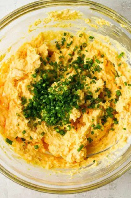 يكمن السر وراء المذاق المثير لبيض الشيطان المحشو في الاندماج المتناغم للمكونات. تشكل القوام الكريمي لمايونيز هيلمان والقشدة الحامضة قاعدة مخملية، بينما تضيف حدة جبنة الشيدر عمقًا. يقدم خردل ديجون والصلصة الحارة لمسة رقيقة ومتوازنة بشكل جميل مع نضارة الثوم المعمر. لتعزيز التجربة الشاملة، لا تنس مكعبات لحم الخنزير المقدد السميكة، مما يضيف نسيجًا مقرمشًا يكمل الحشو الناعم. يتم بعد ذلك تغطية هذا البيض برش جبنة الشيدر المبشورة الطازجة والفلفل الأسود المطحون والمزيد من الثوم المعمر، مما يخلق تحفة بصرية ولذيذة.
