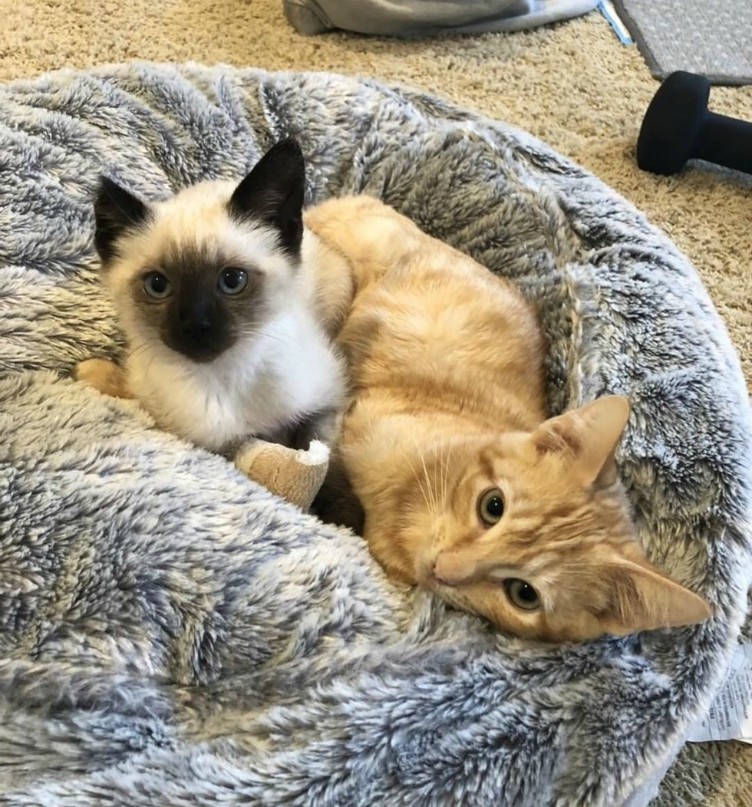 This is one of those stories that makes you believe in true friendship! Two rescued kittens with different personalities and difficult fates have found each other – now they are thick as thieves.