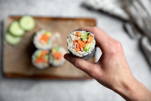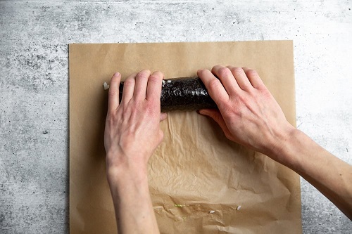 Rolling sushi burritos is an art in itself. Carefully lift the edge of the nori closest to you, using a bamboo sushi mat to help you shape the burrito tightly. Roll the burrito away from you, applying gentle pressure to ensure a firm and compact roll. Once you reach the exposed edge of the nori, moisten it slightly with water to seal the burrito securely. Repeat this process for the remaining wraps, creating a set of perfectly crafted Spicy Salmon Sushi Burrito Wraps.