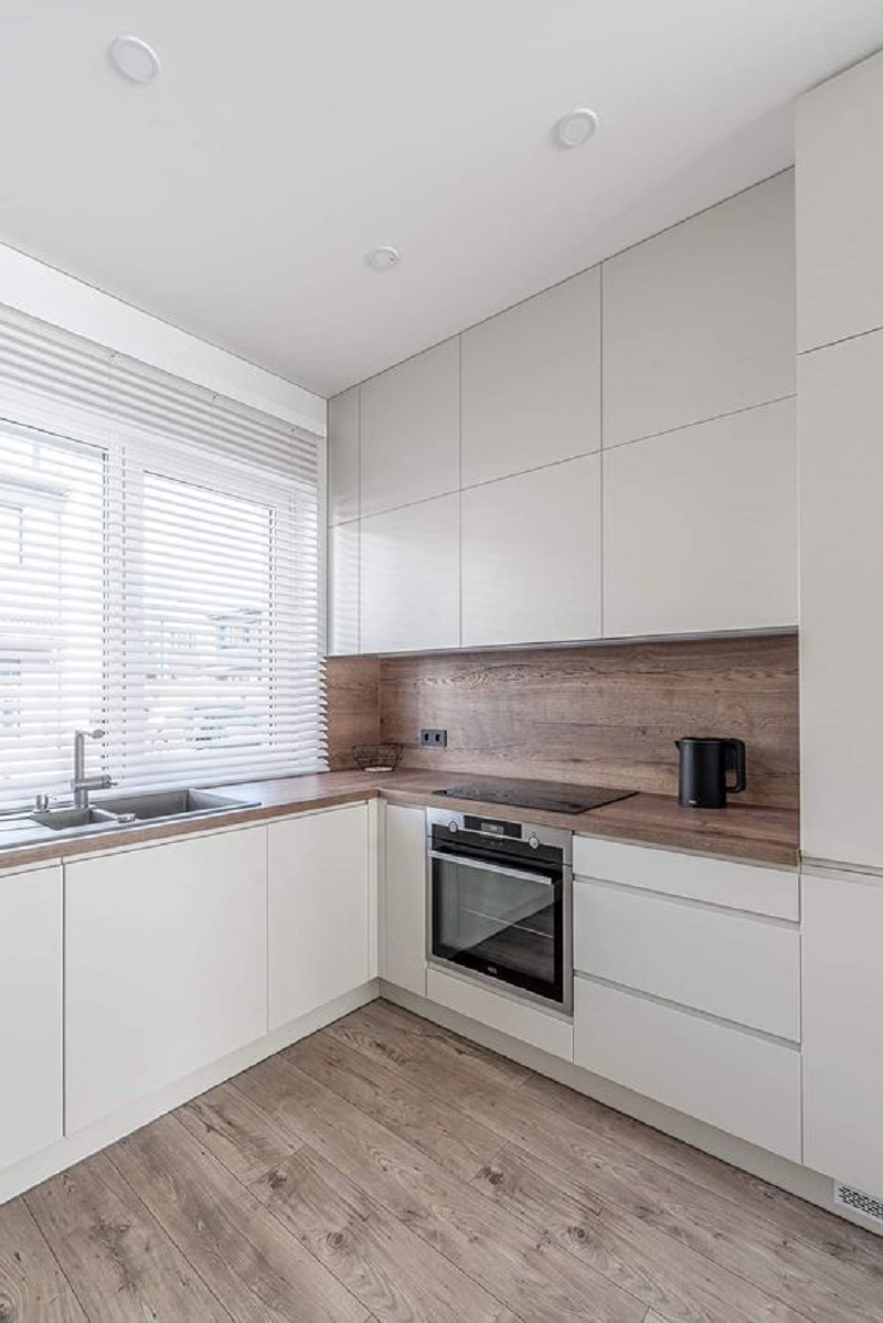 Choose sleek and streamlined cabinet designs with handleless doors or minimal hardware. This approach adds to the clean and uncluttered look while maintaining functionality.
