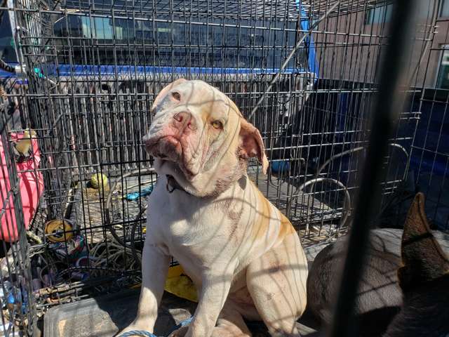 Marzipan and two other dogs were taken to the Department of Animal Welfare in Albuquerque, USA. The animals were in a cramped cage and in desperate need of help. Department officials discovered that two of the dogs had been shot and one had been poisoned – at first they were going to put the poor creatures to sleep, but decided to do what they could to help them recover.