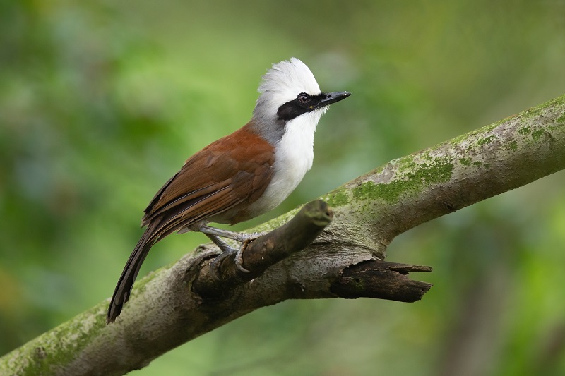 The White-Throated Laughingthrush is a sight to behold. Its plumage is a striking combination of deep chestnut-brown, white, and gray feathers. The most remarkable feature, as the name suggests, is the white throat and neck, which contrasts vividly with its other colors. This unique combination makes it a stunning and easily identifiable bird.
